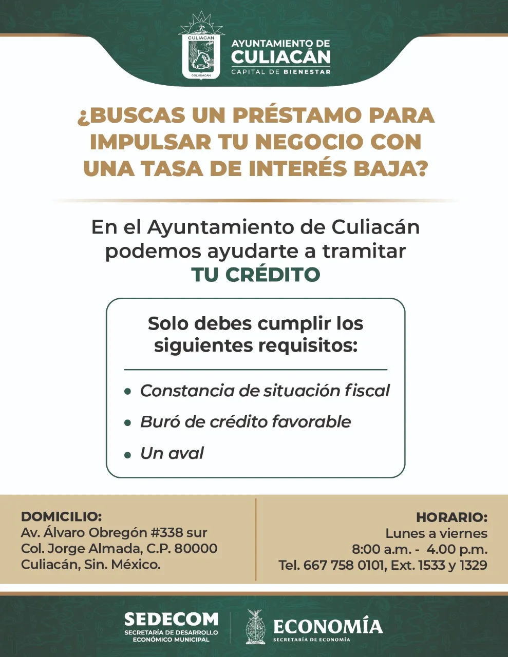 Es un programa de financiamiento para las MIPYMES del municipio de Culiacán de los sectores comercio, servicios e industria destinado a equipamiento, infraestructura productiva y/o capital de trabajo.