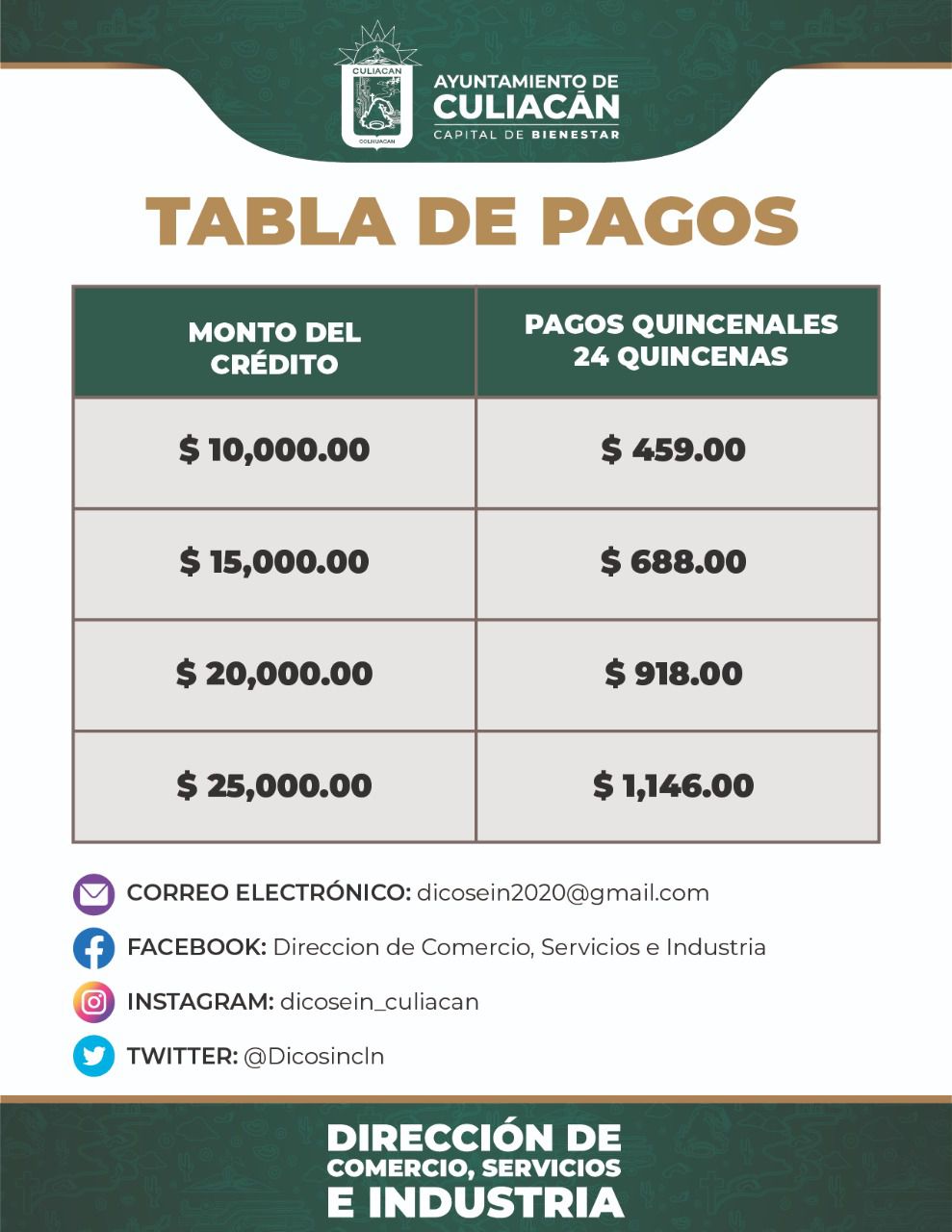 Es un programa de financiamiento para las MIPYMES del municipio de Culiacán de los sectores comercio, servicios e industria destinado a equipamiento, infraestructura productiva y/o capital de trabajo.