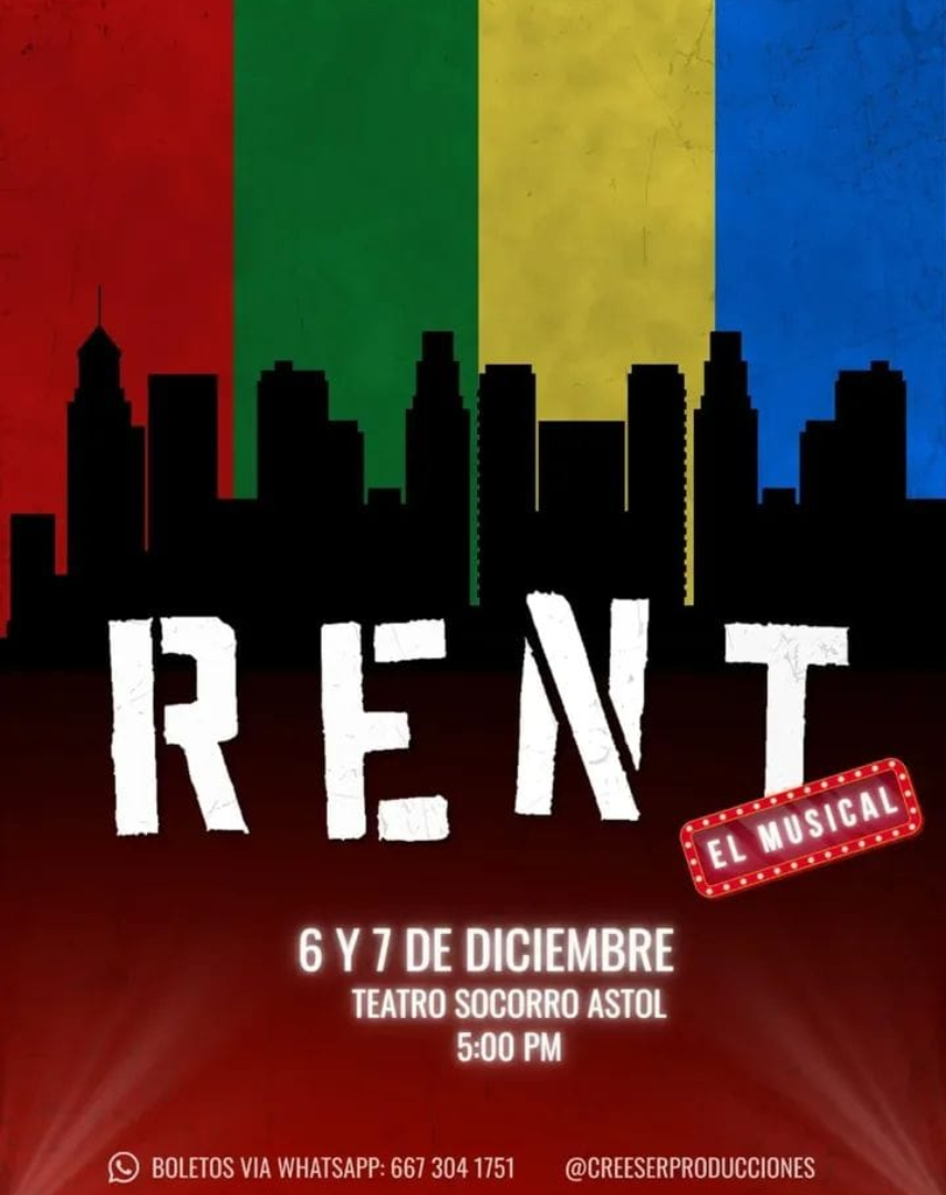 Disfruta de una historia que te llenará de energía y te hará reflexionar sobre la vida, el amor y la amistad. Ambientada en New York en los años 90, Rent nos sumerge en la vida de un grupo de jóvenes que enfrentan la pobreza, el VIH y la búsqueda de sentido en medio del caos, sin dejar de cantar, amar y resistir.