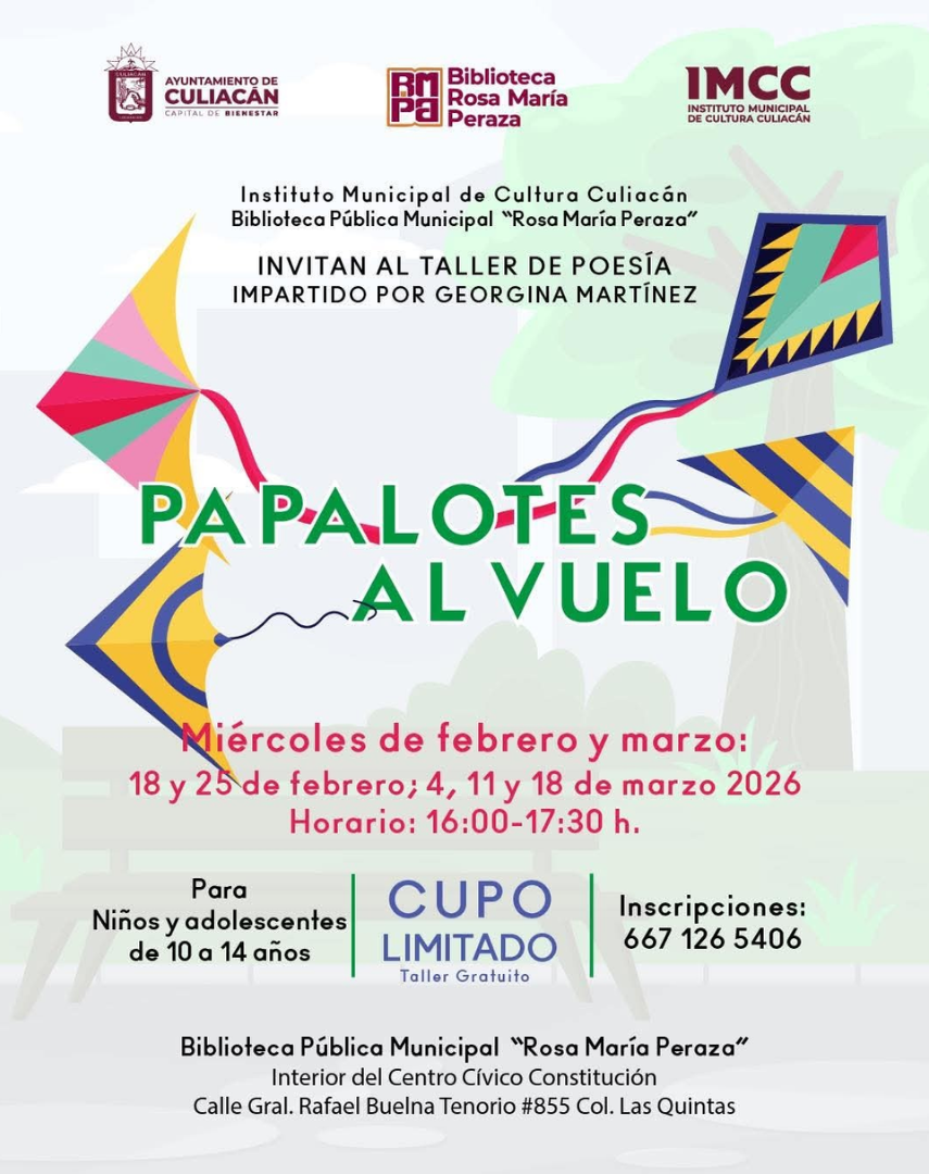 En el IMCC invita a niños y adolescentes a inscribirse al taller de poesía “Papalotes al vuelo” que impartirá la reconocida escritora Georgina Martinez Montoña, ya que el objetivo es desarrollar habilidades literarias y de expresión emocional en preadolescentes.