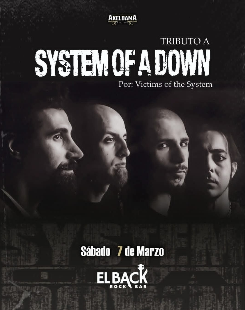 En el Back Rock Bar, disfruta de una noche llena de rock metal puro, en tributo al legendario grupo System of a Down, con la banda de rock Victims of the System, músicas como Chop Suey, Sugar, Lonely Day, Toxicity y varios éxitos que marcaron el año 2000, no te lo pierdas.