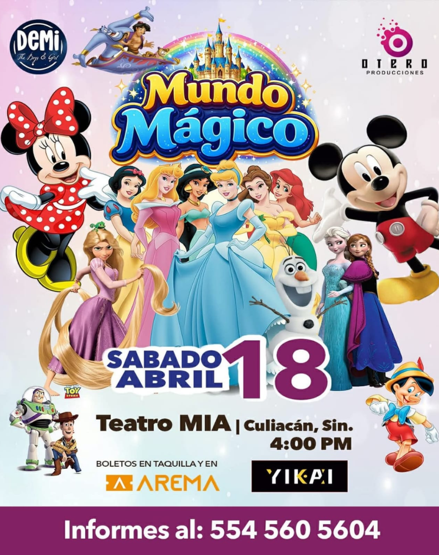 Vive una experiencia inigualable con la llegada de Mundo Mágico, un espectáculo lleno de fantasía, música y tus personajes favoritos. Mickey, Minnie, Goofy, las princesas, Olaf, el Genio y muchos más llegan al escenario para transportarte a un universo donde la magia cobra vida.