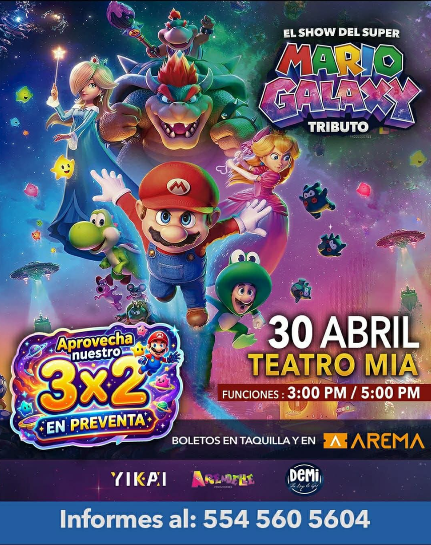 Disfruta de una aventura intergaláctica llena de música, diversión y personajes inolvidables en el show de Super Mario Galaxy. En este espectáculo familiar, los héroes más queridos del Reino Champiñón se reúnen para vivir una misión espacial llena de desafíos, amistad y trabajo en equipo.