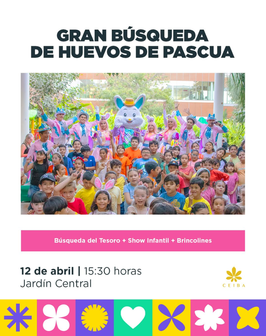Disfruta del evento infantil, en tradición a la semana de pascua, los niños de 5 a 13 años tendrán una gran aventura llena de emoción, sorpresas y momentos increíbles en la búsqueda de huevos de pascua, donde los que encuentren más recibirán buenas recompensas, shows infantiles y brincolines que no se pueden perder.