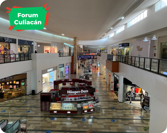 Tiendas ancla: Cinemex premium, Librerías Gandhi, SmartFit