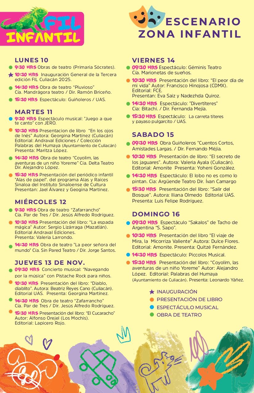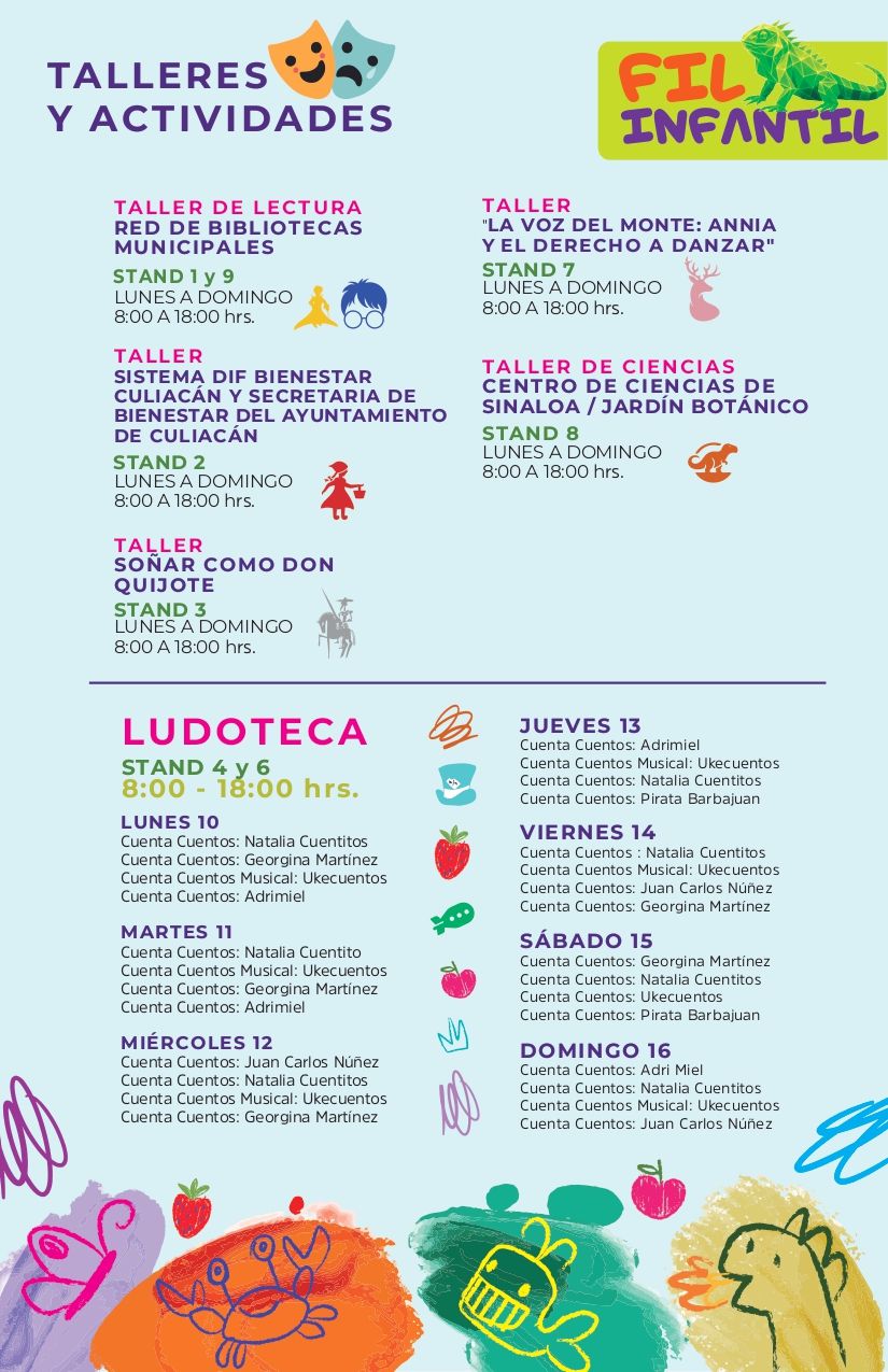 Disfruta del Pabellón Infantil donde la lectura tiene magia, diversión y presentaciones para toda la familia, con las dos obras de teatro de Marioneta de Sueños, Divertiteres, y la presentación del libro “El peor día de mi vida” con Francisco Hinojosa .